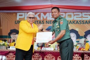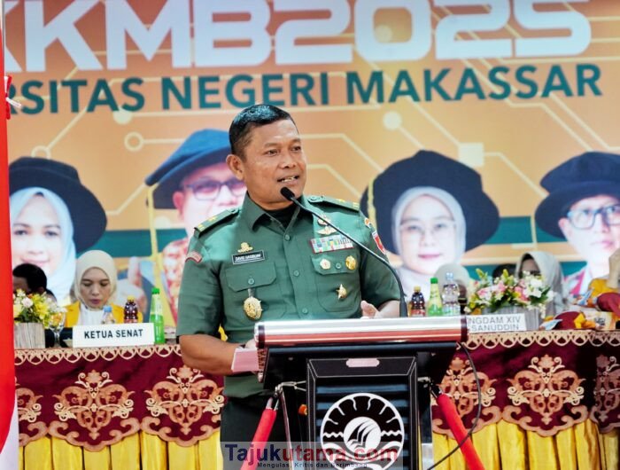 Tajukutama, Makassar – Kepala Kelompok Staf Ahli (Kapoksahli) Pangdam XIV/Hasanuddin Brigjen TNI Musa David Marolop Hasibuan, S.I.P., M.A.B., menjadi narasumber dalam Kuliah Umum PKKMB (Pengenalan Kehidupan Kampus bagi Mahasiswa Baru) Universitas Negeri Makassar (UNM), bertempat di Pelataran Gedung Menara Phinisi, Jl. A. P. Pettarani, Kota Makassar, Senin, (11/8/2025).