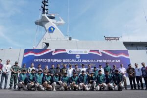 Tajukutama, Makassar – Kepala Staf Kodam (Kasdam) XIV/Hasanuddin, Brigjen TNI Sugeng Hartono, S.E., M.M., menghadiri Pelepasan Kapal dan Tim Ekspedisi Rupiah Berdaulat 2025 Sulawesi Selatan, bertempat di Dermaga Layang, Makodaeral VI, Jl. Yos Sudarso, Kota Makassar. Selasa, (21/10/2025).