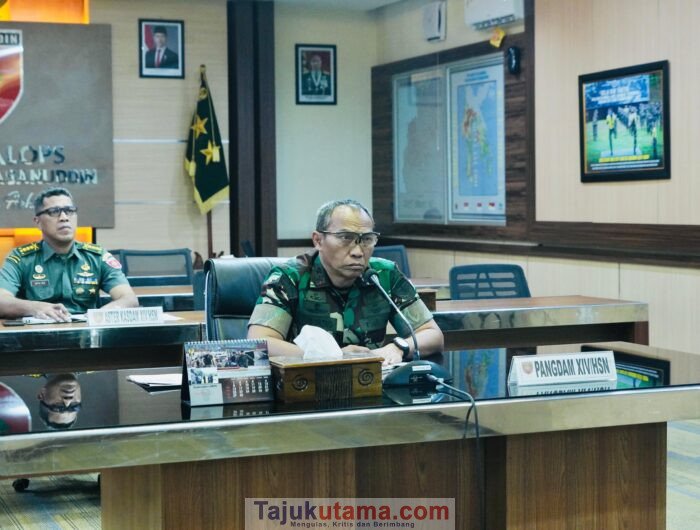 Tajukutama, Makassar – Pangdam XIV/Hasanuddin Mayjen TNI Windiyatno mengikuti kegiatan Video Conference (Vicon) bersama Panglima TNI Jenderal TNI Agus Subiyanto, S.E., M.Si., di Ruang Vicon Puskodalops Makodam, Jl. Urip Sumoharjo, Kota Makassar. Kamis (23/10/2025).