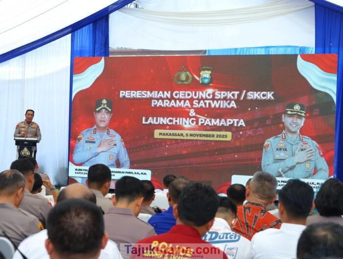 TAJUK UTAMA, MAKASSAR – Kepolisian Daerah Sulawesi Selatan kembali menorehkan langkah konkret dalam meningkatkan kualitas pelayanan publik. Kapolda Sulawesi Selatan, Irjen Pol. Djuhandhani Rahardjo Puro, S.H., M.H., meresmikan Gedung SPKT dan SKCK “Parama Satwika” serta secara resmi meluncurkan Satuan Pamapta Polrestabes Makassar, bertempat di Mako Polrestabes Makassar, Rabu (5/11/2025).