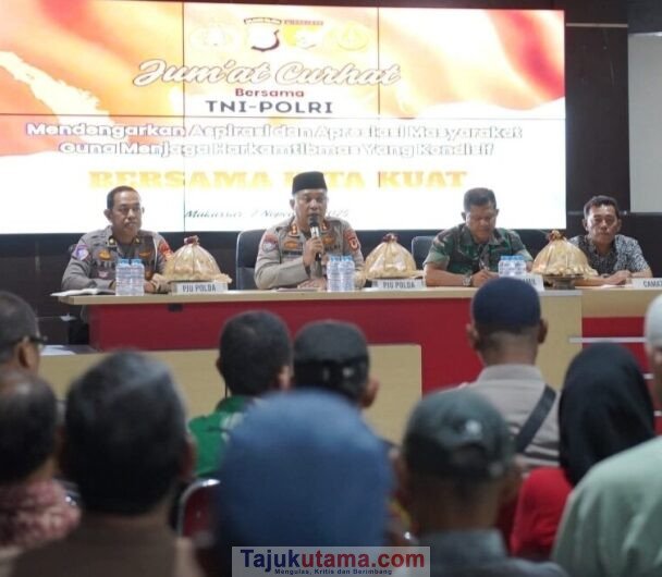 Makassar.Tajuk Utama — Pemerintah Kecamatan Biringkanaya memfasilitasi pelaksanaan kegiatan Jumat Curhat yang digelar oleh Polda Sulawesi Selatan (Sulsel). Kegiatan yang berlangsung di wilayah Kelurahan Maradekaya Utara ini menjadi ajang silaturahmi sekaligus sarana dialog antara aparat kepolisian dan masyarakat.Jumat 7/11/2025