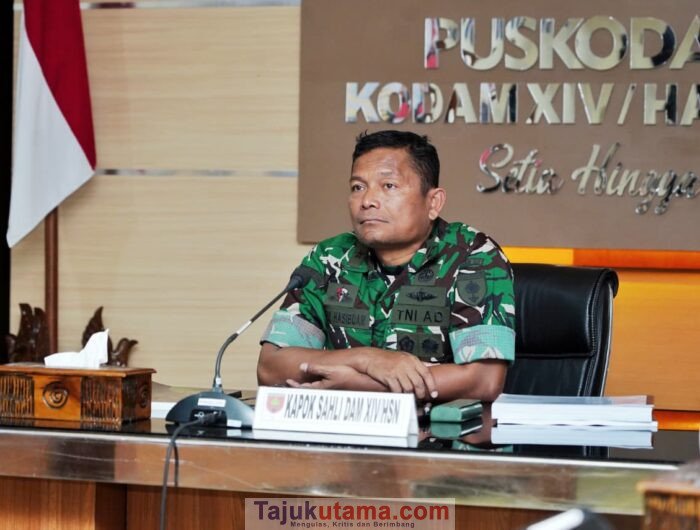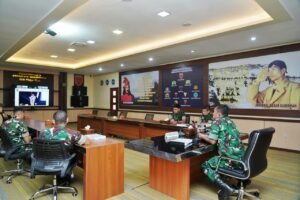 Tajukutama, Makassar – Kepala Kelompok Staf Ahli (Kapoksahli) Pangdam XIV/Hasanuddin Brigjen TNI Musa David Marolop Hasibuan S.I.P, M.A.B., mengikuti Rapat Koordinasi (Rakor) Nasional Sinkronisasi Tata Ruang Pertahanan yang dipimpin oleh Deputi Bidang Koordinasi Pertahanan Negara dan Kesatuan Bangsa Kemenko Polkam RI Mayjen TNI Purwito Hadi Wardhono secara Video Conference (Vicon), bertempat di Ruang Vicon Puskodalops Makodam, Jl. Urip Sumoharjo, Kota Makassar. Rabu, (12/11/2025).