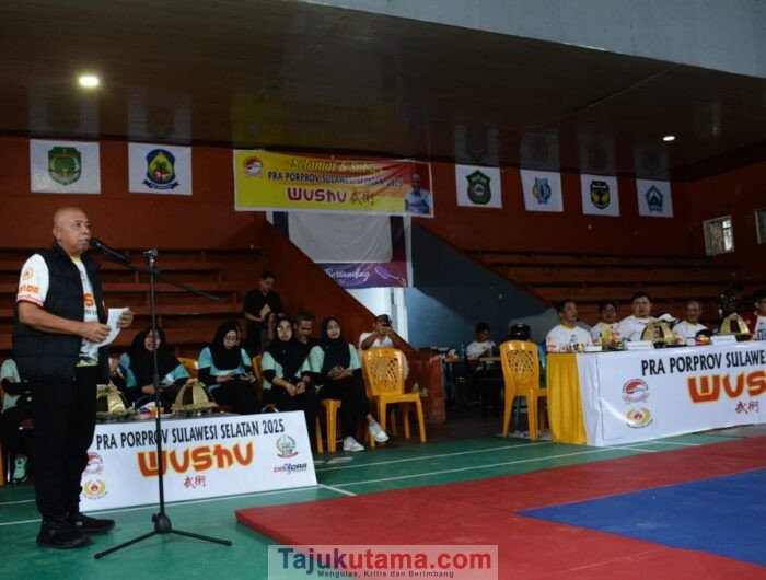 Tajukutama, MAKASSAR – Kepala Dinas Pemuda dan Olahraga (Kadispora) Provinsi Sulawesi Selatan, H. Suherman, SE, MM, didampingi Ketua Umum Pengprov Wushu Sulsel Drs. H. A. Kadir Halid, secara resmi membuka Pra Pekan Olahraga Provinsi (Pra Porprov) Sulsel 2025 cabang olahraga Wushu, yang digelar di GOR UNHAS Baraya, Jalan Sunu, Kecamatan Tallo, Kota Makassar, Minggu (7/12/2025).