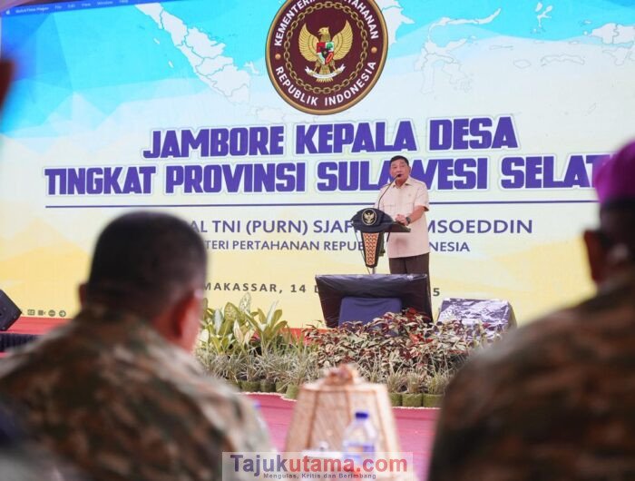 Tajukutama, Gowa – Pangdam XIV/Hasanuddin Mayjen TNI Bangun Nawoko mendampingi Menteri Pertahanan (Menhan) RI Jenderal TNI (Purn) Dr. Sjafrie Sjamsoeddin, M.B.A., dalam kunjungan kerjanya memberikan pembekalan kepada peserta Jambore Kepala Desa se-Sulawesi Selatan yang digelar di Rindam XIV/Hasanuddin, Jl. Malino, Pakatto, Kab. Gowa. Minggu, (14/12/2025).