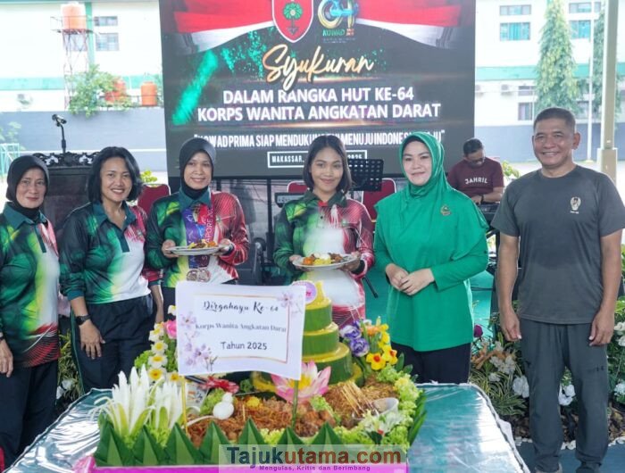 Tajukutama, Makassar — Suasana penuh semangat dan kebanggaan mewarnai Syukuran Hari Ulang Tahun (HUT) ke-64 Korps Wanita Angkatan Darat (Kowad) Tahun Anggaran 2025 yang dihadiri Pangdam XIV/Hasanuddin Mayjen TNI Bangun Nawoko bersama Ketua Persit Kartika Chandra Kirana PD XIV/Hasanuddin, Ny. Renny Bangun Nawoko dan Pejabat Utama (PJU) Kodam, yang berlangsung di GOR Hasanuddin, Jl. Jenderal Sudirman, Kota Makassar. Selasa (23/12/2025).