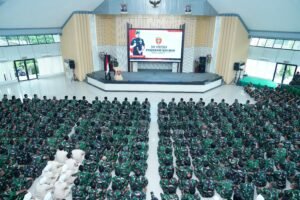 Tajukutama, Makassar — Mengawali tahun 2026, Pangdam XIV/Hasanuddin Mayjen TNI Bangun Nawoko memberikan Jam Pimpinan kepada seluruh prajurit dan PNS di lingkungan Makodam XIV/Hasanuddin sebagai upaya memberikan motivasi serta memperkuat semangat pengabdian agar pelaksanaan tugas kedepan berjalan semakin optimal, dan profesional, yang dilaksanakan di Balai Pertemuan Hasanuddin (BPH), Jl. Urip Sumoharjo, Kota Makassar. Jumat (2/1/2026).