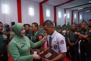 Selain itu, Pangdam menegaskan kehadiran negara dan pimpinan bagi prajurit berprestasi melalui pemberian penghargaan sebagai bentuk keberpihakan terhadap kinerja dan dedikasi. Pangdam juga mendorong prajurit kewilayahan agar berani bermimpi dan mewujudkannya melalui program yang berdampak langsung bagi kesejahteraan masyarakat, serta menekankan peran istri prajurit sebagai pendukung utama keberhasilan tugas pengabdian. “Setiap prestasi itu bukan kehebatan saya atau para komandan, tetapi hasil kerja keras anak buah di lapangan. Kepercayaan publik yang tinggi hari ini adalah kerja para Babinsa. Berbanggalah, karena di lengan kiri kalian tertulis nama Babinsa. Yakini dan sadari bahwa kita semua adalah orang penting. Mari bekerja dengan empati, saling menghargai, dan menjadi teladan bagi masyarakat.” ujar Mayjen Bangun.