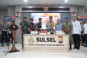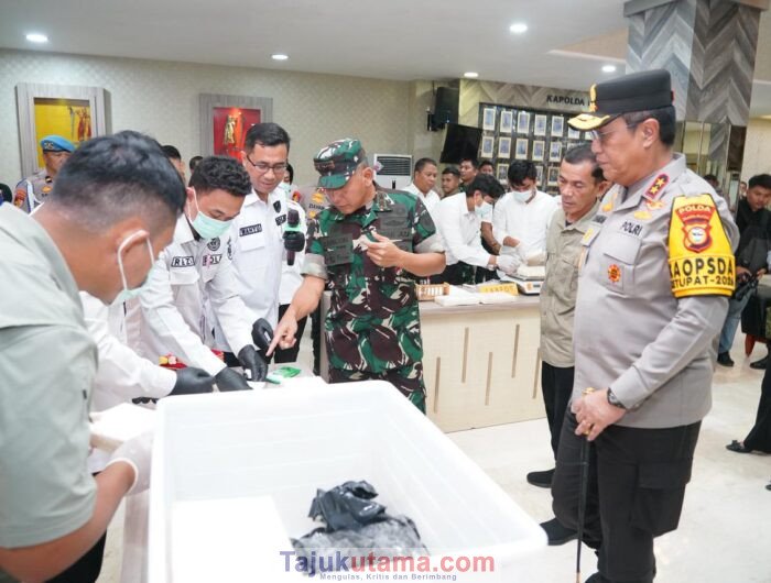Tajukutama, Makassar – Pangdam XIV/Hasanuddin Mayjen TNI Bangun Nawoko menyerahkan barang temuan Narkotika jenis Kokain kepada Kapolda Sulawesi Selatan Irjen Pol. Djuhandhani Rahardjo Puro, yang disaksikan unsur Forkopimda Sulsel di Mapolda Sulsel, Jl. Perintis Kemerdekaan, Kota Makassar. Senin, (16/3/2026).