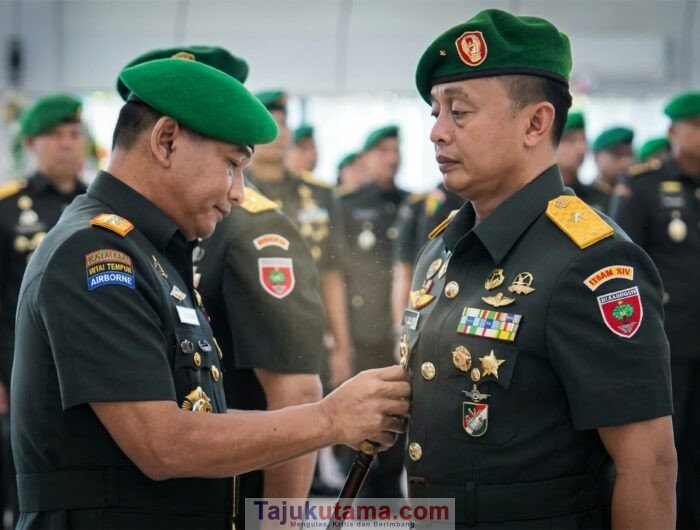 Tajukutama, Makassar – Pangdam XIV/Hasanuddin Mayjen TNI Bangun Nawoko didampingi Ketua Persit KCK Daerah XIV/Hasanuddin Ny. Renny Bangun Nawoko memimpin Serah Terima Jabatan (Sertijab) dan Pelepasan Inspektur Kodam (Irdam) XIV/Hsn. Dalam kesempatan tersebut, jabatan Irdam diserahterimakan dari Brigjen TNI Berlin Germany, S.Sos., M.M., CFrA., CHRMP., kepada Brigjen TNI Wulang Nur Yudhanto, S.E., sebagai bagian dari dinamika organisasi dan pembinaan satuan, bertempat di Balai Pertemuan Hasanuddin (BPH) Makodam, Jl. Urip Sumoharjo, Kota Makassar. Jumat, (10/4/2026).