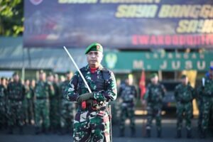 Pada kesempatan ini, Pangdam membacakan sambutan Panglima TNI Jenderal TNI Agus Subiyanto, S.E., M.Si., yang menyampaikan apresiasi dan rasa bangga atas semangat, dedikasi, dan loyalitas yang telah ditunjukkan seluruh personel TNI dalam setiap pelaksanaan tugas, ditengah perkembangan lingkungan strategis global, regional maupun nasional yang dinamis dan kompleks serta berharap Setiap Prajurit TNI harus terus menjadi pioner dalam membangun kinerja TNI yang “Profesional, Responsif, Integratif, Modern dan Adaptif”, ditengah perubahan lingkungan strategis yang dinamis.